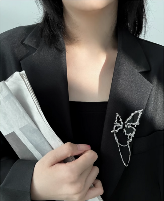 AC17 | Black butterfly tassel sweater brooch