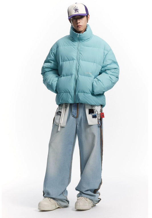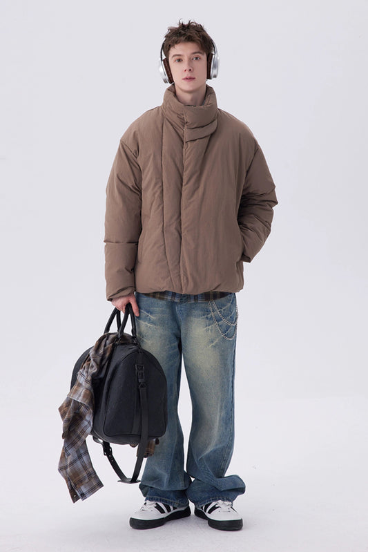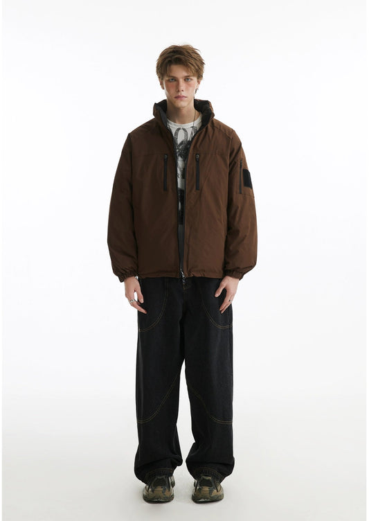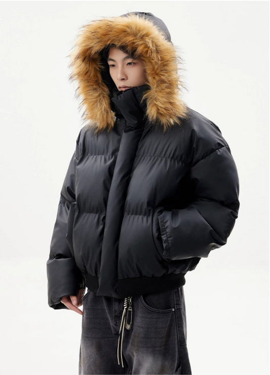 Soft PU Veneer Puffer Jacket Detachable Hood