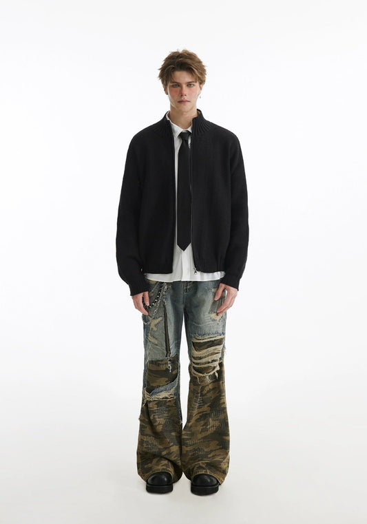 Retro Cardigan Zipper Sweater Half-Neck Knit Jacket