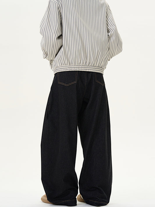 Vintage Straight Loose Denim Black Wide-Leg Jeans