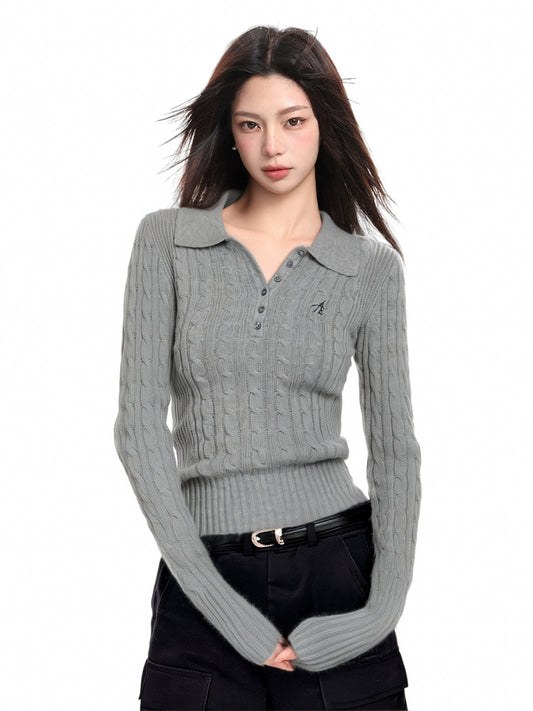 Polo Collar Slim Twist Knit Sweater
