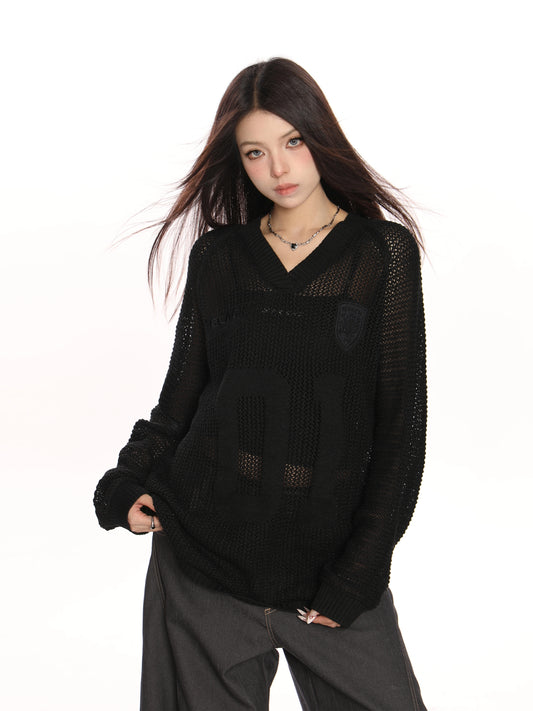 V-neck Cut-Out Knit Sweater Oversize